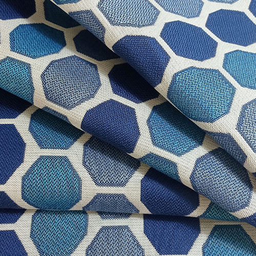 La collection HONOLULU est un tissu Jacquard fabriqué à partir de fil recyclé de bouteilles en plastique GREEN LINE, certifié GRS et traité au H2OH !