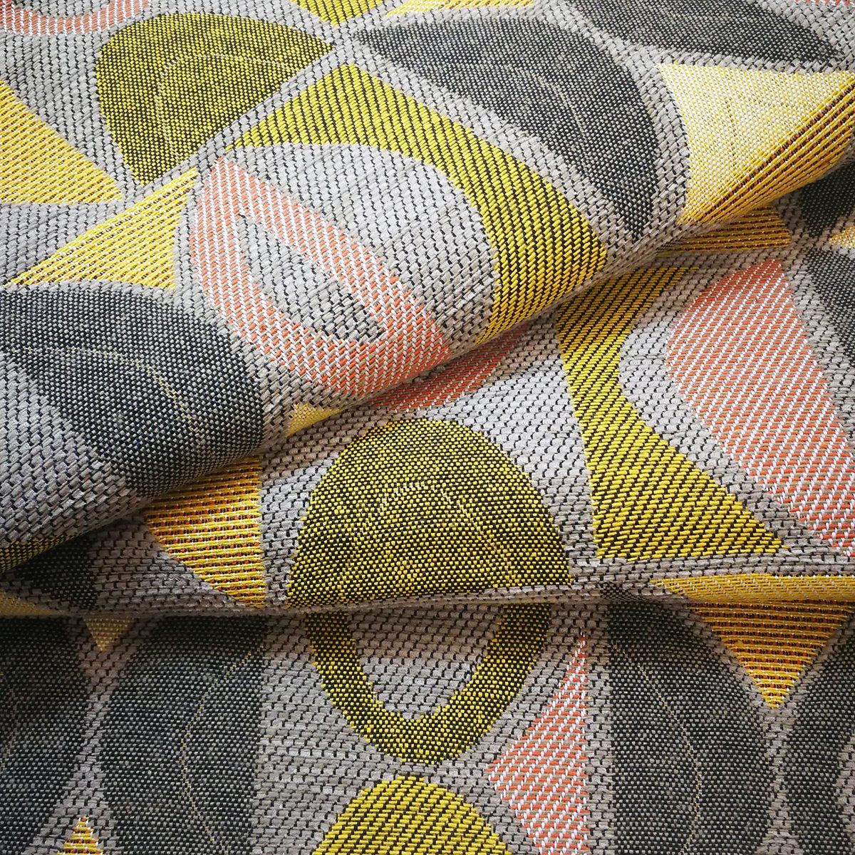 La collection RINGO est tissée dans de magnifiques jacquards géométriques. Ce tissu est traité H2OH! et est disponible en 16 coloris.